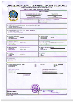 根据安哥拉的法规,每票B/L运至安哥拉(Angola)的货物,都必须在装货港提供C.N.C.A.出具的船运证书。安哥拉(Angola)CNCA船运证书是CONSELHO NACIONAL DE CARREGADORES DE ANGOLA的缩写。