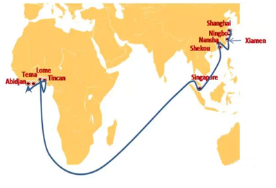 中远去往西非途径尼日利亚的航线:FWAX/WAX